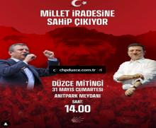 CHP Düzce Örgütü, 31 Mayıs’ta Anıtpark Meydanı’nda demokrasi ve adal...