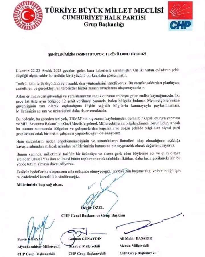 ''Şehitlerimiz üzerinden algı yaparak terörü kınamadığımız söylentisini kamuoyuna yansıtma girişimini şiddetle kınıyoruz. Tüm kamuoyunun bilmesini isteriz ki ; Terörün hedeflerine ulaşmasına asla müsaade etmeyeceğiz. Türkiye’nin bağımsızlığına ve Ülkemizin bölünmez bütünlüğüne kasteden hain yapılar ile ilgili partimizin tutumu çok açık ve nettir.