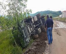Gümüşova Selamlar köyünde Gama İplik fabrikası yakınında saç yüklü kamyon yol kenarındaki yumşak zemine girdiğinde araç sağ tarafa meyillenince üzerindeki yük kaydı kamyonu devirdi. Bu ilginç kazada yaralanan olmadı.
