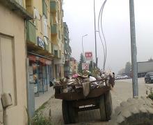 Gümüşova’da bir traktör  kasasına üzerine doldurulan çöpler görüntü kirliliğine neden oldu. Güm&