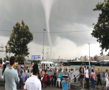 Yağmurla birlikte etkili olan fırtına ise Karadeniz'de hortum oluşturdu. Hafta sonu plajların tıklım tıklım dolduğu Akçakoca'da bugün sahiller bomb
